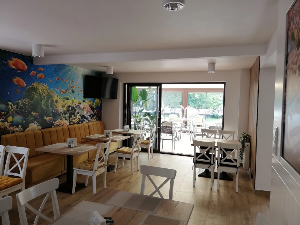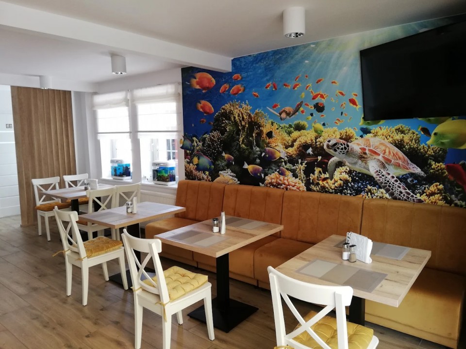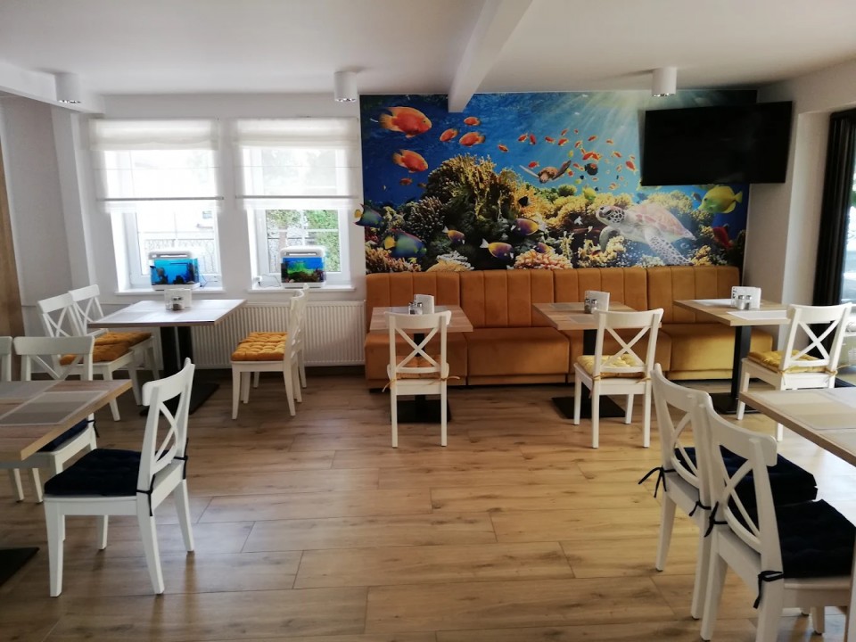 Nasza przestrzeń to jasne, nowoczesne wnętrze z elementami morskiego klimatu, wygodna oranżeria z widokiem na zieleń oraz kącik z akwarium - idealny dla rodzin z dziećmi. Wygodne stoliki, czystość i subtelna dekoracja tworzą idealne miejsce na spokojny posiłek blisko plaży.